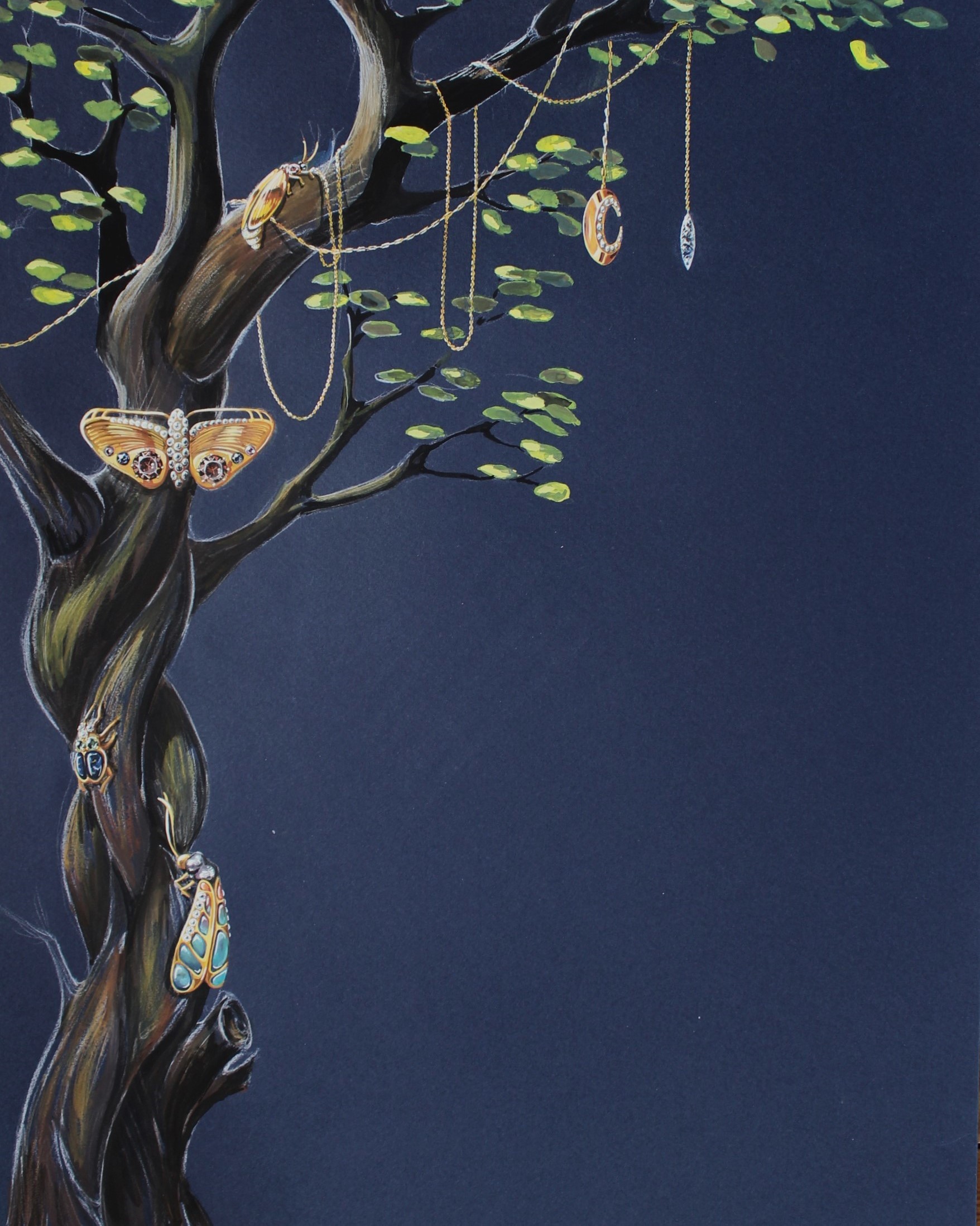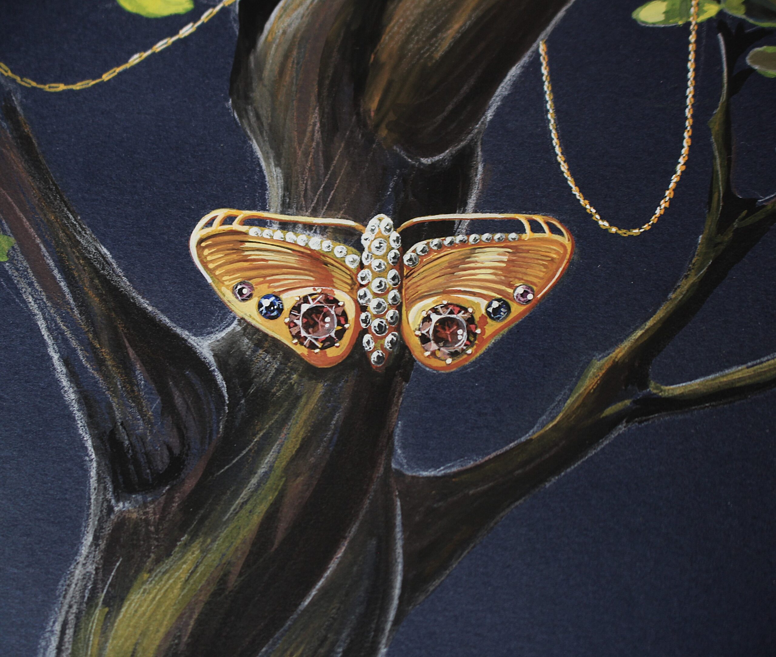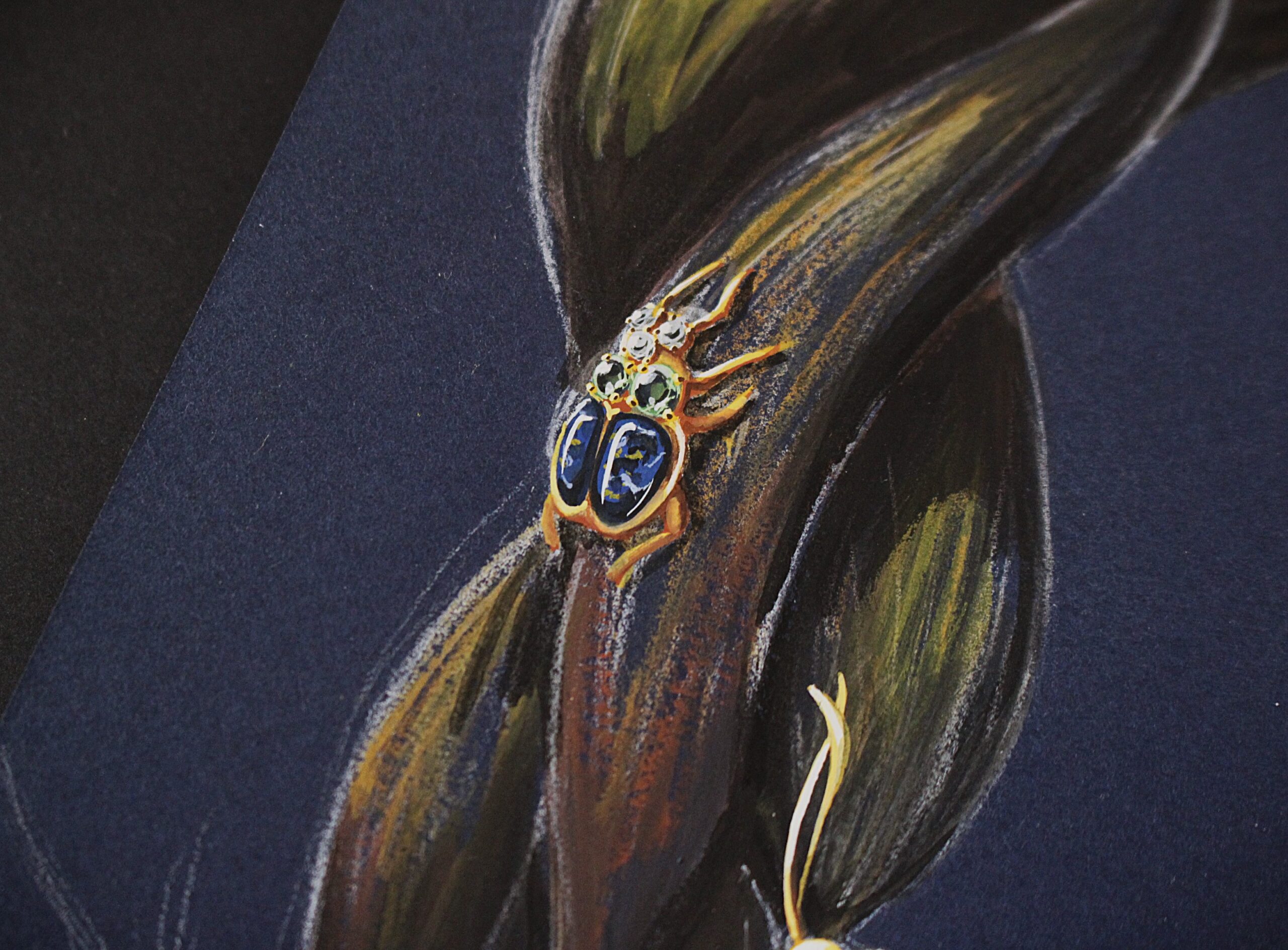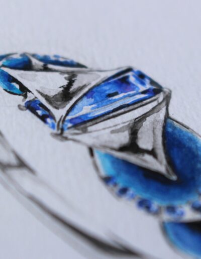 Pour embellir un site internet, mettre en valeur une collection dans un showroom, une vitrine ou un catalogue, des compositions au crayon et à l’aquarelle valorisent la recherche créative et donnent à voir l’art derrière le bijou.